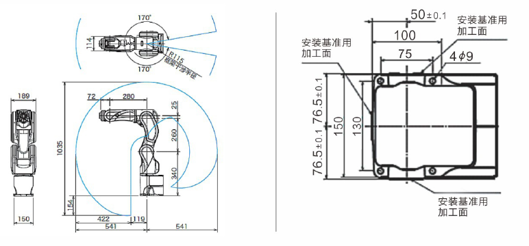 最大负载4Kg;额定负载3Kg ;最大工作半径540mm
